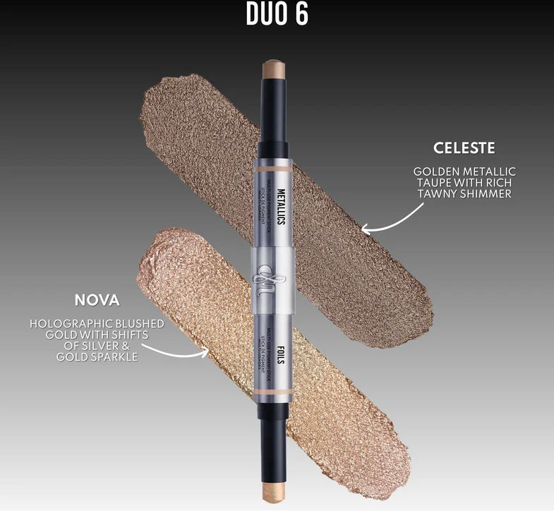 Gently tap or swipe onto eyes, cheeks, or lips. Swipe on Metallics. Tap on Foils. Layer together or wear solo.