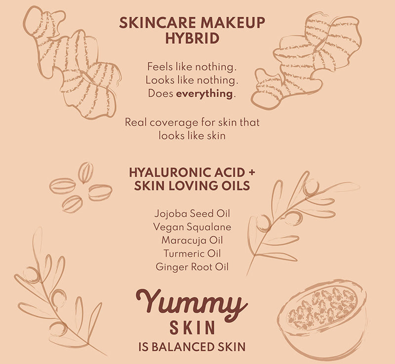 Start from the centre of the face and blend outwards for even application. Layer over Yummy Skin Glow Serum for an added boost of radiance for the ultimate healthy, glowing complexion.