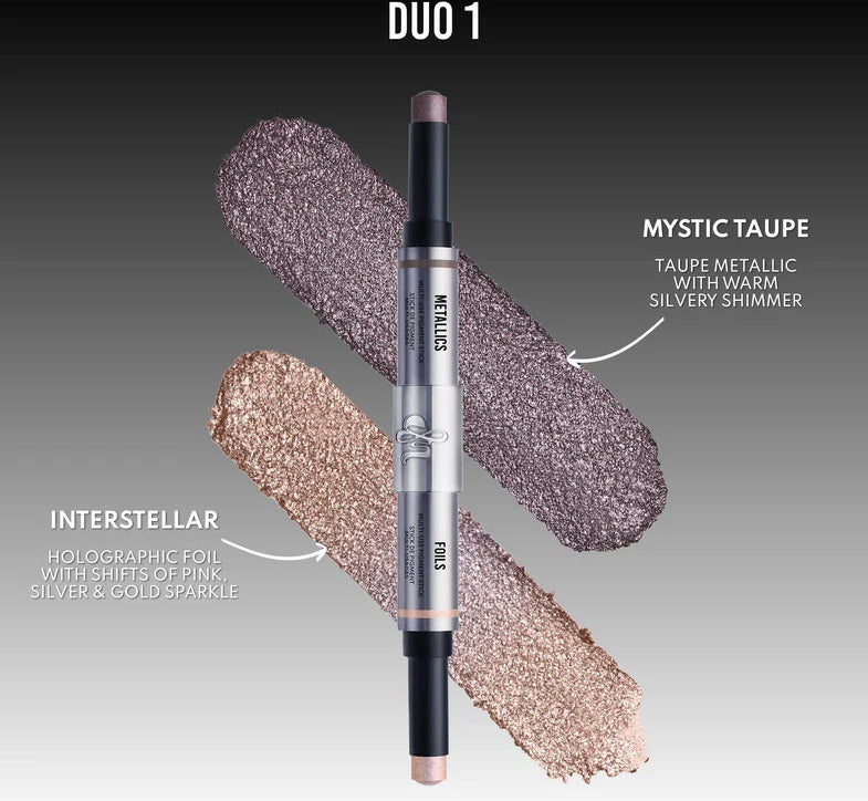 Gently tap or swipe onto eyes, cheeks, or lips. Swipe on Metallics. Tap on Foils. Layer together or wear solo.