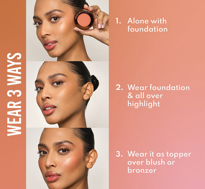 - A light reflecting balm to powder with a hint of colour that blurs and subtly adds soft, dimensional glow all over the face