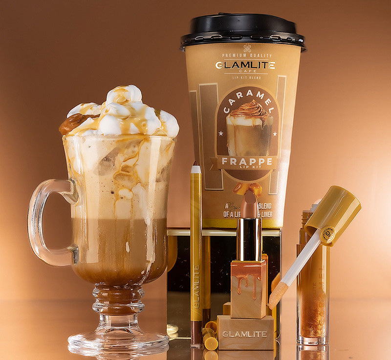 - Welcome to the Glamlite Cafe! Indulge in the creamy allure of the Caramel Frappe Lip Kit – a trio of lip essentials inspired by the luscious hues of your favorite coffee indulgence