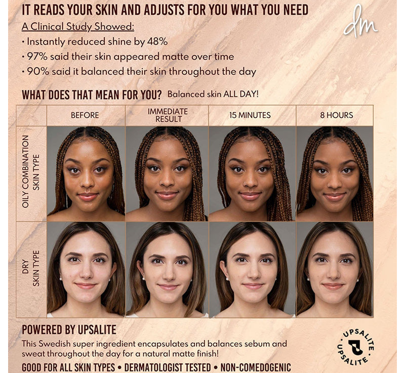 Note: As you wear it throughout the day, this unique formula adjusts its oil absorption to address your skin's specific needs.