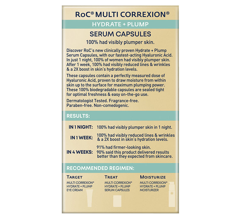 - Discover RoC’s clinically proven Hydrate + Plump Serum Capsules, with fast-acting Hyaluronic Acid